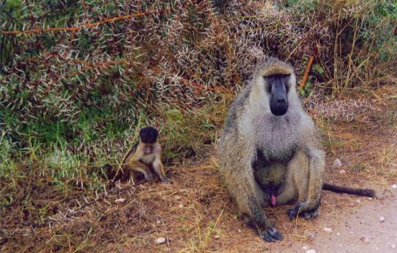Ein Pavian mit Kind