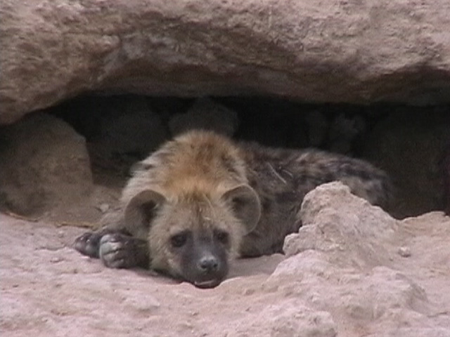 Hyäne vor dem Bau